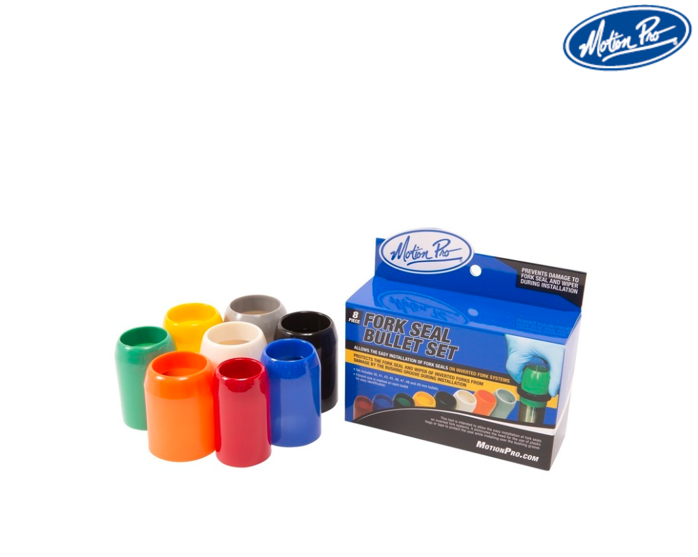 Jeu de protections conçu pour faciliter l’installation des joints SPI et des caches-poussière de fourche, tout en évitant les détériorations lors du passage sur les arêtes, gorges ou rainures présentes sur les tubes de fourche.