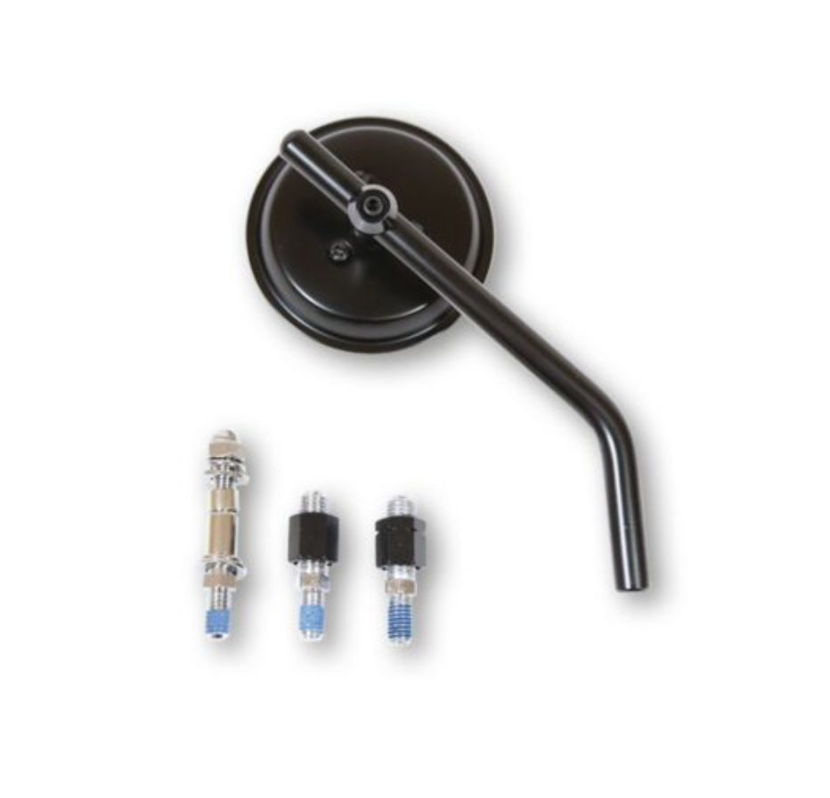 Mini rétroviseur en acier d’un diamètre de Ø8 cm, doté d’un taraudage M8, conçu pour un montage en position haute.